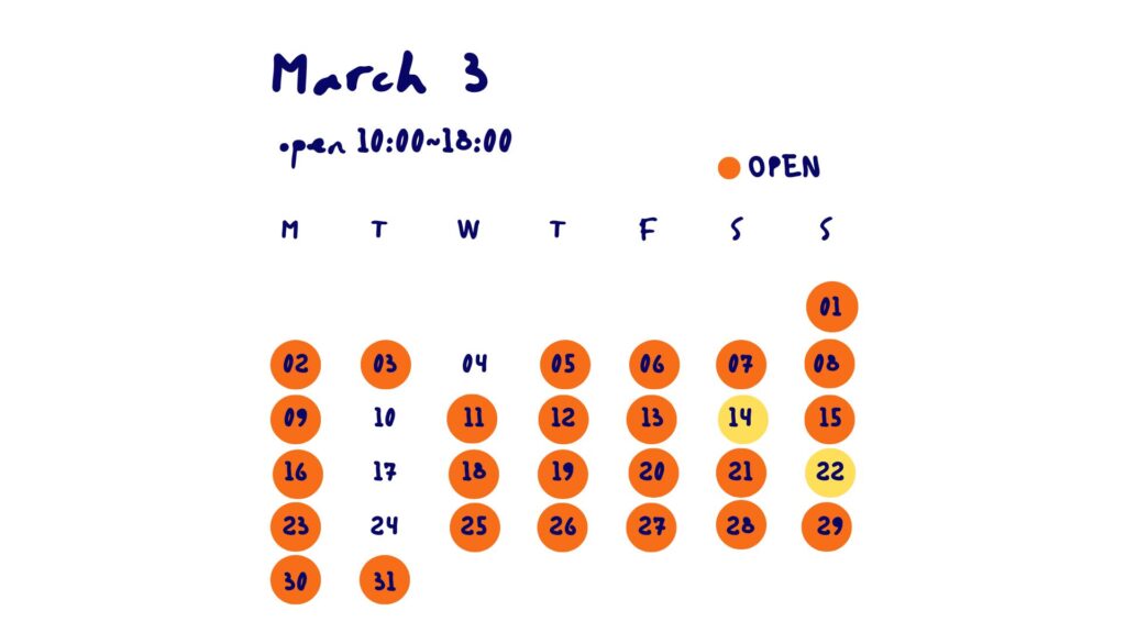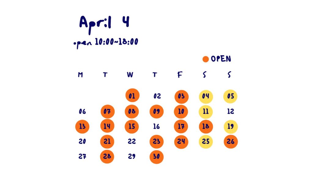 *4(土)、5(日)、11(土)、19(日)、25日(土)は都合により変則営業となります。 詳しい営業時間はインスタグラムの投稿をご確認ください。